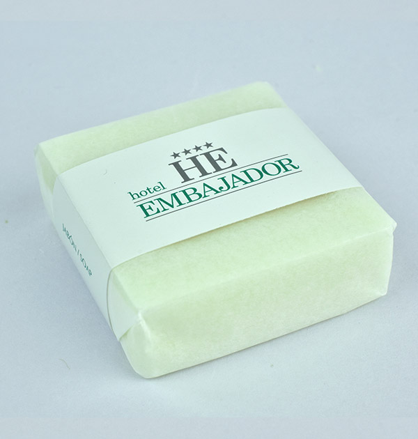 Jabones cuadrados de 20 y 30 grs , envuelto en papel seda con faja personalizada.